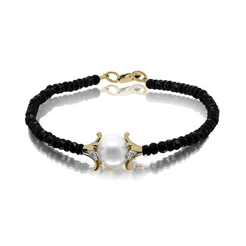 Браслет из лимонного золота с бриллиантом, с жемчугом и с ониксом KABAROVSKY 14-21319-1500
