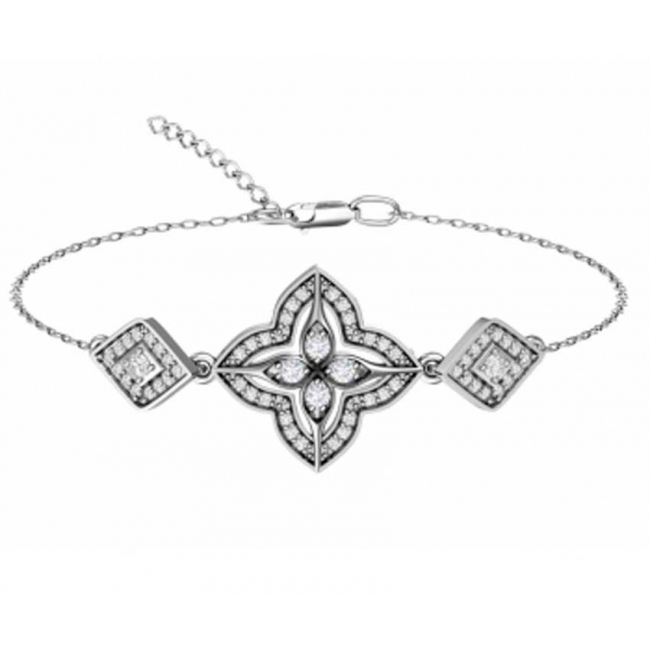 Браслет-цепь из серебра с фианитом и с кварцем Эффект с47-005бкс-17