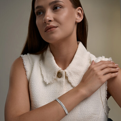Браслет жесткий из белого золота с бриллиантом SOKOLOV 1050439-3