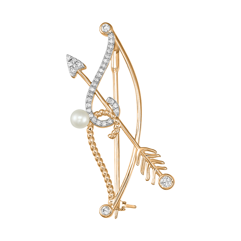 Брошь из золота с фианитом и с жемчугом Алорис 041677