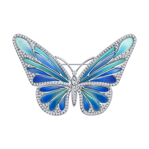 Брошь из белого золота с бриллиантом и с сапфиром Магия Золота 02-868б-551-1-13-00