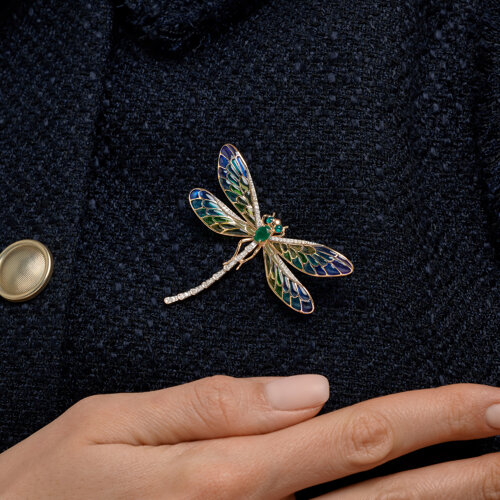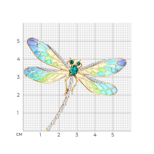 Брошь из золота с бриллиантом и с изумрудом SOKOLOV 6049034