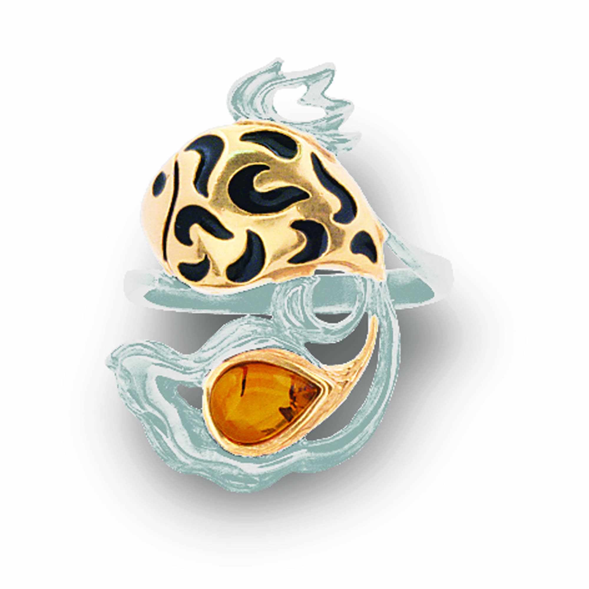 Кольцо из серебра с позолотой с янтар...