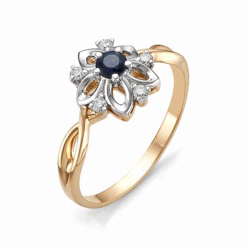 Кольцо из золота с бриллиантом и с сапфиром Алькор 11302-102