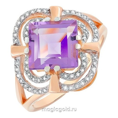 Кольцо из золота с фианитом и с аметистом Магия Золота кл-495к-а
