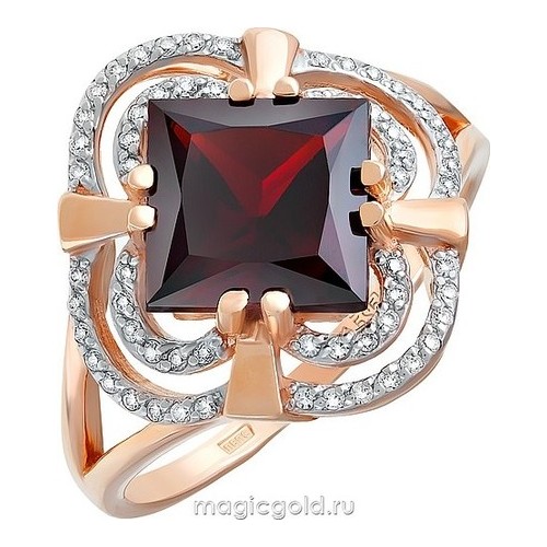 Кольцо из золота с фианитом и с гранатом Магия Золота кл-495к-г