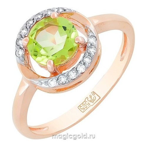 Кольцо из золота с фианитом и с хризолитом Магия Золота кл-482к-х