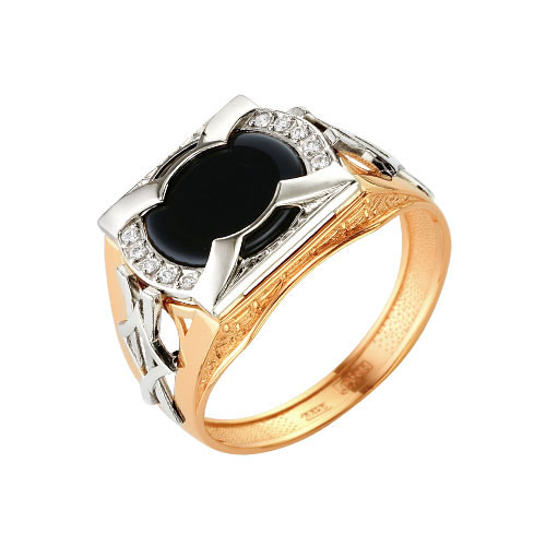 Печатка из золота с фианитом и с ониксом Караваевская ЮФ 41-0150
