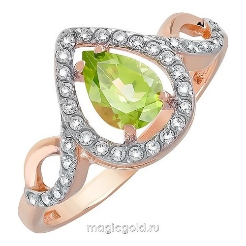 Кольцо из золота с фианитом и с хризолитом Магия Золота кл-532к-х