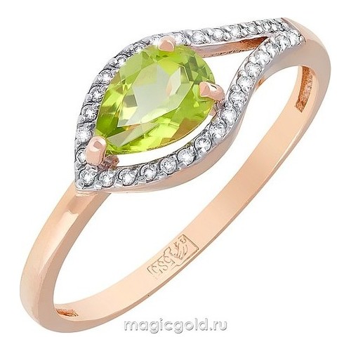Кольцо из золота с фианитом и с хризолитом Магия Золота кл-514к-х