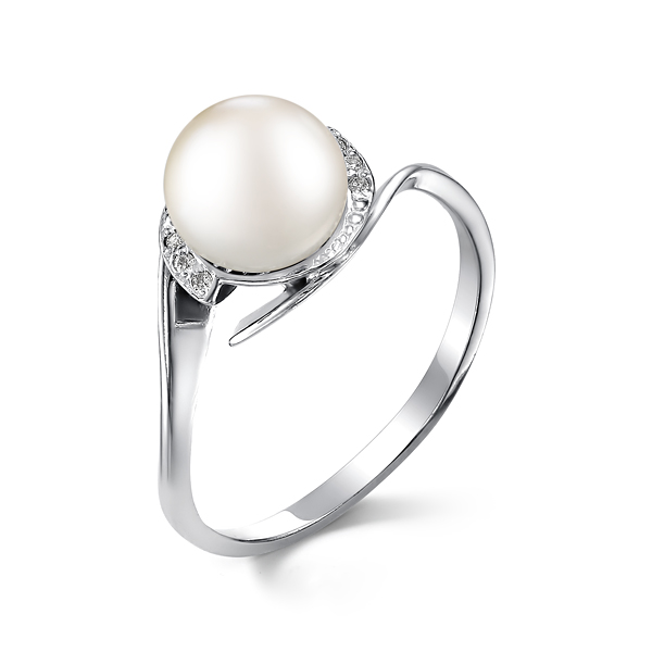 Кольцо из серебра с фианитом и с жемчугом Де Флер 51199S1