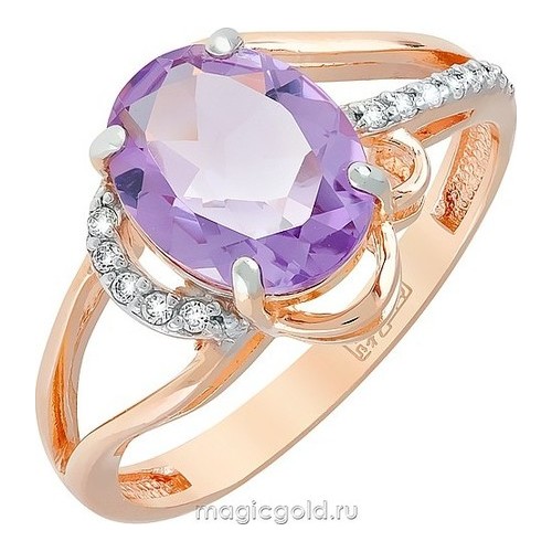 Кольцо из золота с фианитом и с гранатом Магия Золота кл-522к-г