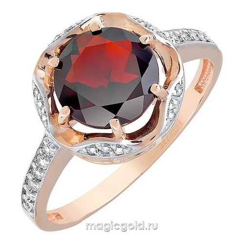 Кольцо из золота с фианитом и с гранатом Магия Золота кл-518к-г