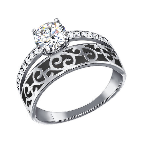 Кольцо из серебра с фианитом и с эмалью SOKOLOV 94011137