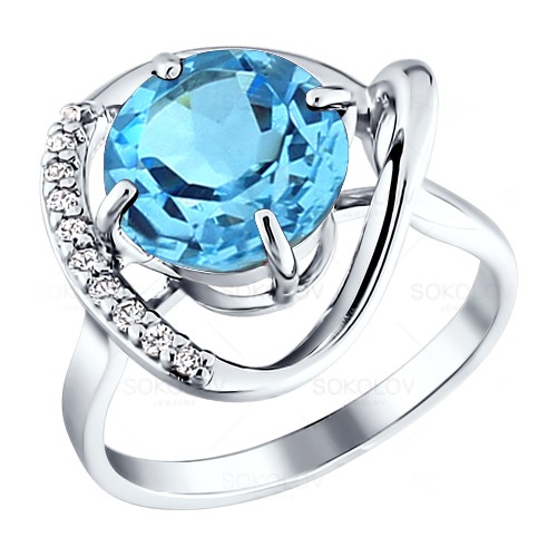 Кольцо из серебра с фианитом и с топазом SOKOLOV 92010554