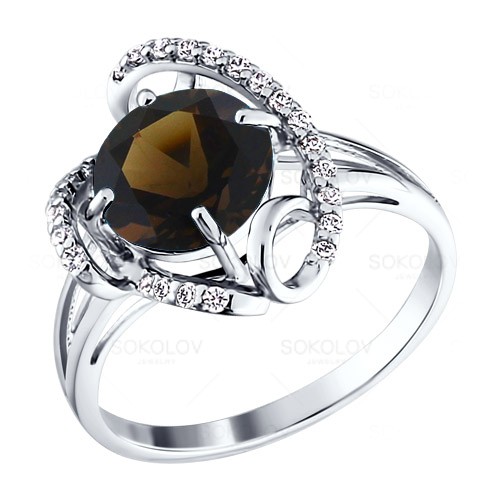 Кольцо из серебра с фианитом и с раухтопазом SOKOLOV 92010569