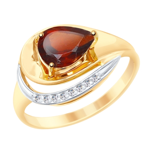 Кольцо из золота с фианитом и с гранатом SOKOLOV 715240