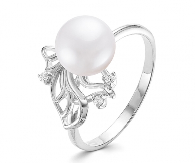 Кольцо из серебра с фианитом и с жемчугом Эффект с44-9600кж-17