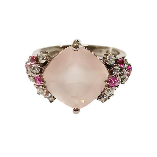 Кольцо из серебра с фианитом и с кварцем Марказит s100270