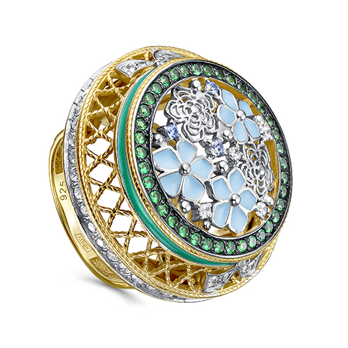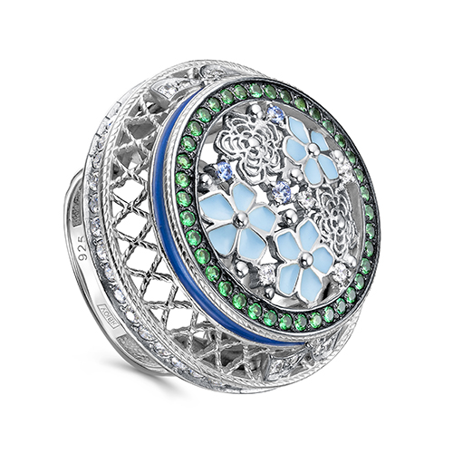 Кольцо из серебра с кристаллом сваровским и с шпинелем KABAROVSKY 11-025-2607