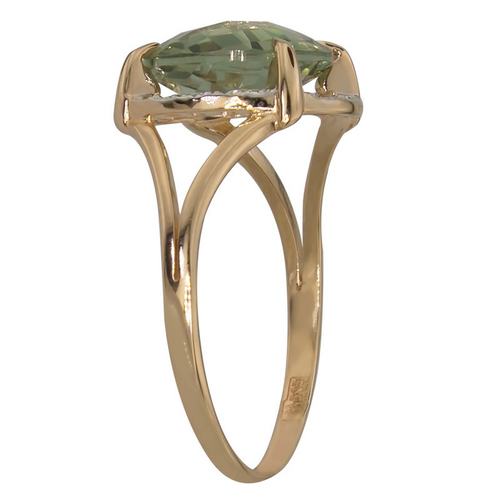 Кольцо — маленькое произведение искусства, над которым трудились лучшие ювелиры (Россия). Драгоценный металл (золото 585 пробы) составляет идеальную комбинациюс ограненной вставкой (аметист зеленый, цирконий), которая ярко играет светом на своих многочисленных гранях. Давно мечтали о таком украшении? Оно действительно роскошно смотрится и подчеркивает индивидуальность, поэтому станет великолепным завершающим штрихом в разных стильных образах. Кольца из нашей коллекции всегда отражают актуальные тренды ювелирной моды.