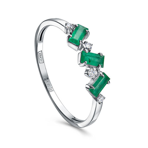 Кольцо из белого золота с бриллиантом и с изумрудом Платина 01-0663-00-106-1120-30
