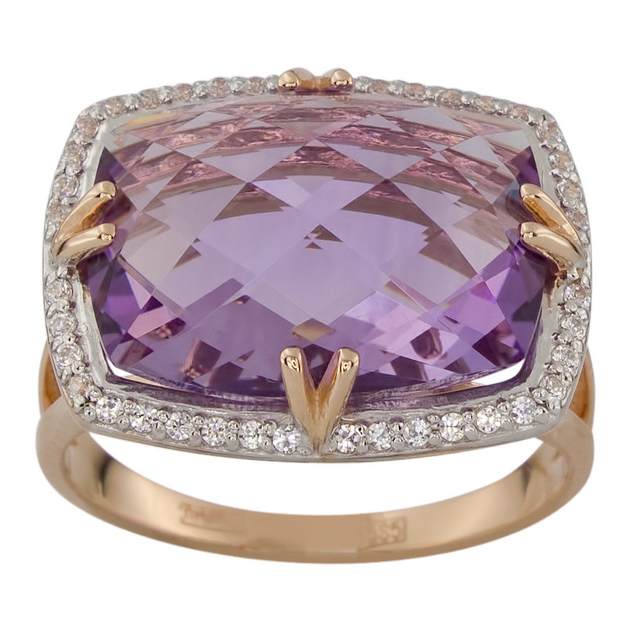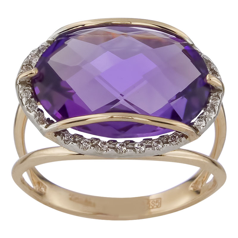 Кольцо из золота с фианитом и с аметистом Алорис 011012