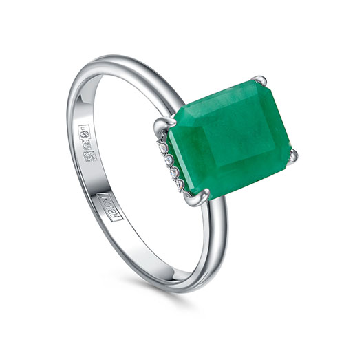 Кольцо из белого золота с бриллиантом и с изумрудом Клондайк с230624би
