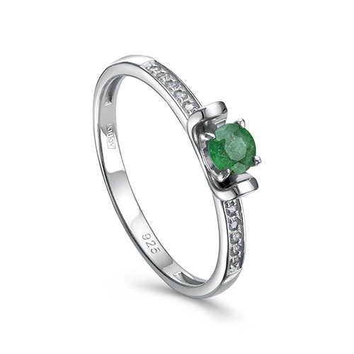 Кольцо из серебра с фианитом и с изумрудом KABAROVSKY 11-883-1200