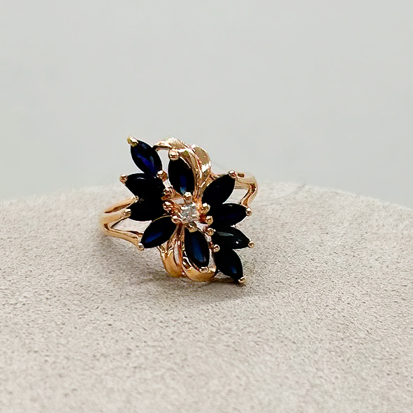 Кольцо из золота с бриллиантом и с сапфиром Морион с5-2004кс — маленькое произведение искусства, над которым трудились лучшие ювелиры (Россия). Драгоценный металл (золото 585 пробы) составляет идеальную комбинациюс ограненной вставкой (сапфир: 10 шт. маркиз 3/3, вес 2, бриллиант: 1 шт. 57 круглая 3/5, вес 0,02), которая ярко играет светом на своих многочисленных гранях. Давно мечтали о таком украшении? Оно действительно роскошно смотрится и подчеркивает индивидуальность, поэтому станет великолепным завершающим штрихом в разных стильных образах. Кольца из нашей коллекции всегда отражают актуальные тренды ювелирной моды.