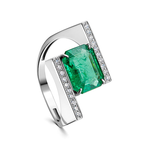 Кольцо из белого золота с бриллиантом и с изумрудом KABAROVSKY 11-12125-1200