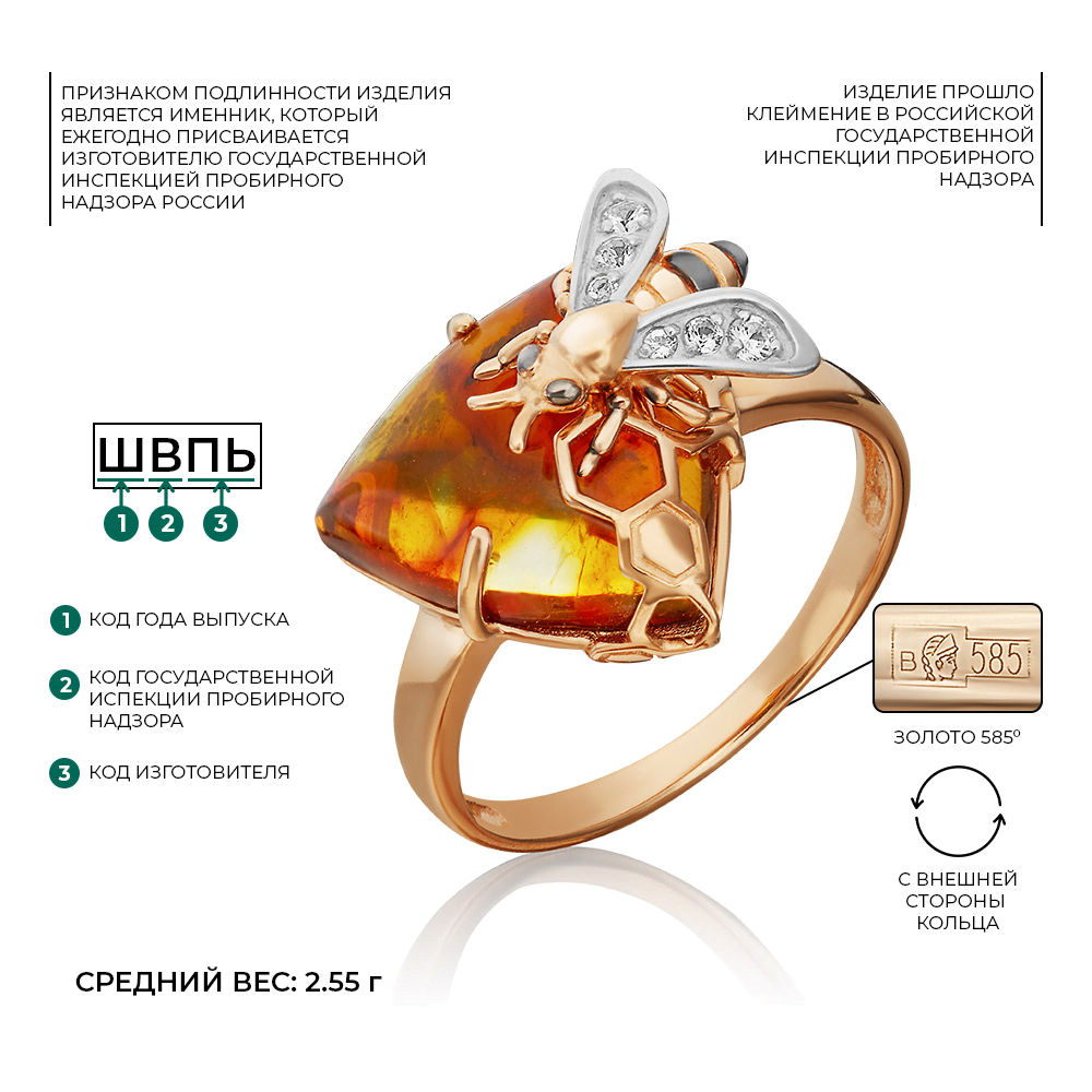 Кольцо — маленькое произведение искусства, над которым трудились лучшие ювелиры (Россия). Драгоценный металл (золото 585 пробы) составляет идеальную комбинациюс ограненной вставкой (топаз, янтарь), которая ярко играет светом на своих многочисленных гранях. Давно мечтали о таком украшении? Оно действительно роскошно смотрится и подчеркивает индивидуальность, поэтому станет великолепным завершающим штрихом в разных стильных образах. Кольца из нашей коллекции всегда отражают актуальные тренды ювелирной моды.