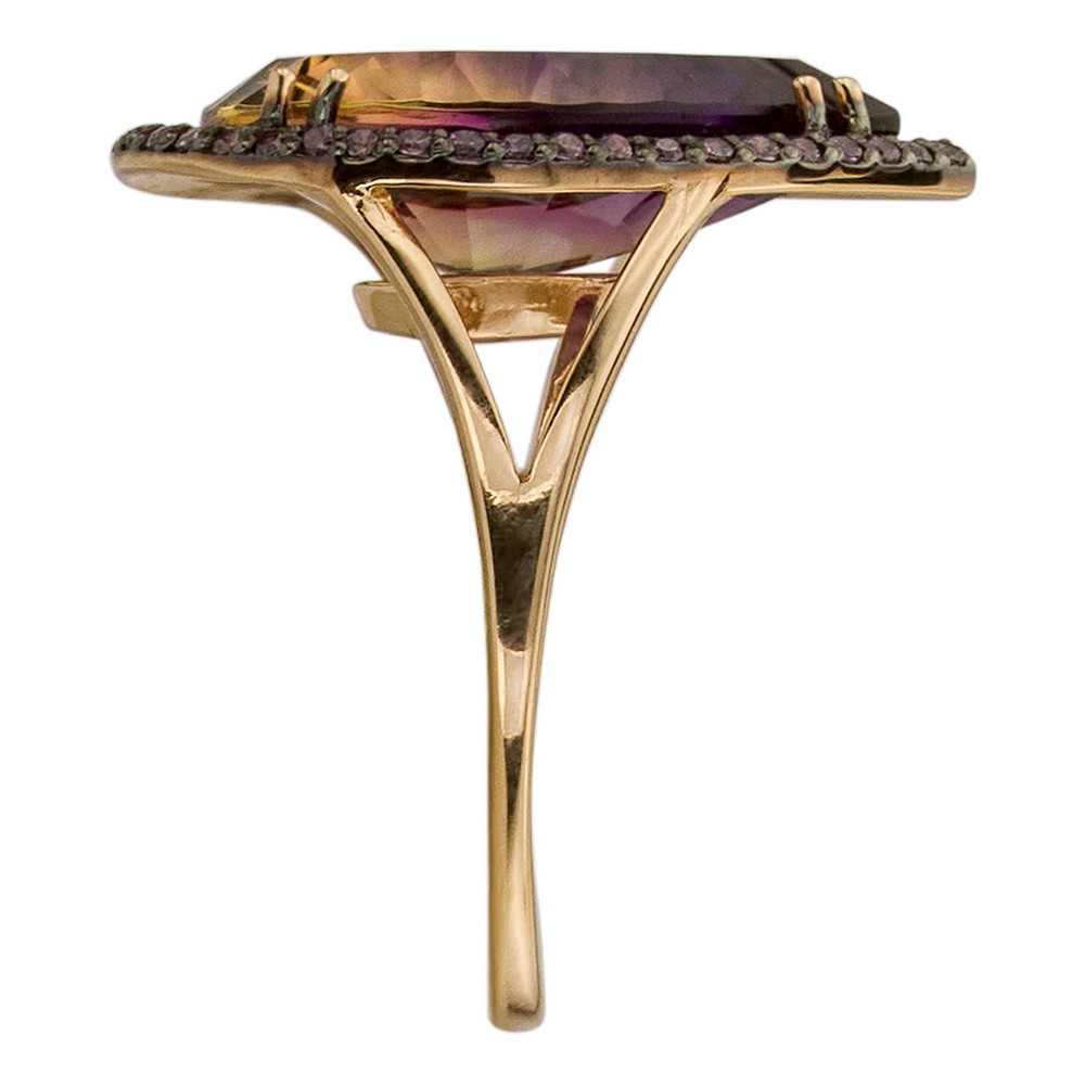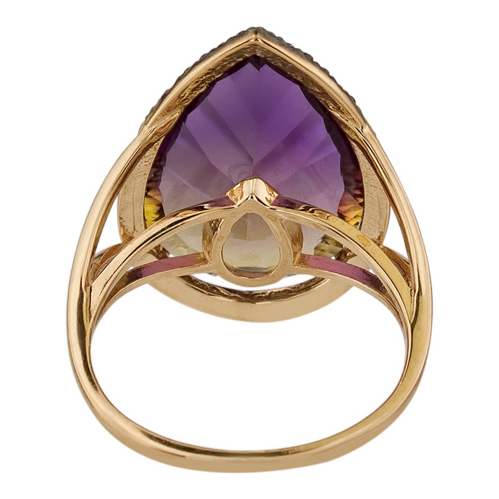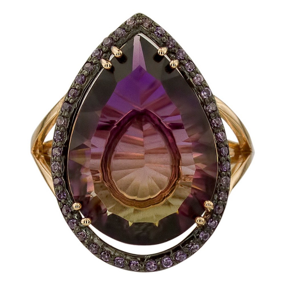 Кольцо — маленькое произведение искусства, над которым трудились лучшие ювелиры (Россия). Драгоценный металл (золото 585 пробы) составляет идеальную комбинациюс ограненной вставкой (аметрин синтетический, цирконий), которая ярко играет светом на своих многочисленных гранях. Давно мечтали о таком украшении? Оно действительно роскошно смотрится и подчеркивает индивидуальность, поэтому станет великолепным завершающим штрихом в разных стильных образах. Кольца из нашей коллекции всегда отражают актуальные тренды ювелирной моды.