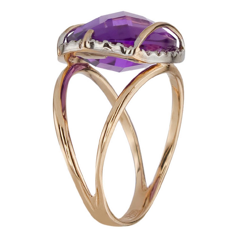 Кольцо из золота с фианитом и с аметистом Алорис 011420