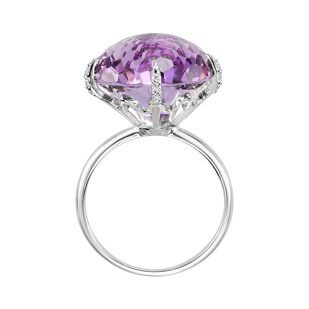 Кольцо из белого золота с фианитом и с аметистом Алорис 211502