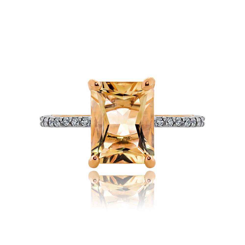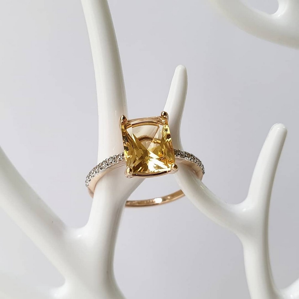 Кольцо из золота с фианитом и с цитрином Алорис 011914