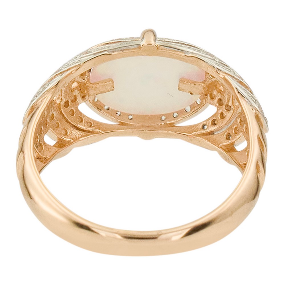 Кольцо — маленькое произведение искусства, над которым трудились лучшие ювелиры (Россия). Драгоценный металл (золото 585 пробы) составляет идеальную комбинациюс ограненной вставкой (опал синтетический белый, цирконий), которая ярко играет светом на своих многочисленных гранях. Давно мечтали о таком украшении? Оно действительно роскошно смотрится и подчеркивает индивидуальность, поэтому станет великолепным завершающим штрихом в разных стильных образах. Кольца из нашей коллекции всегда отражают актуальные тренды ювелирной моды.