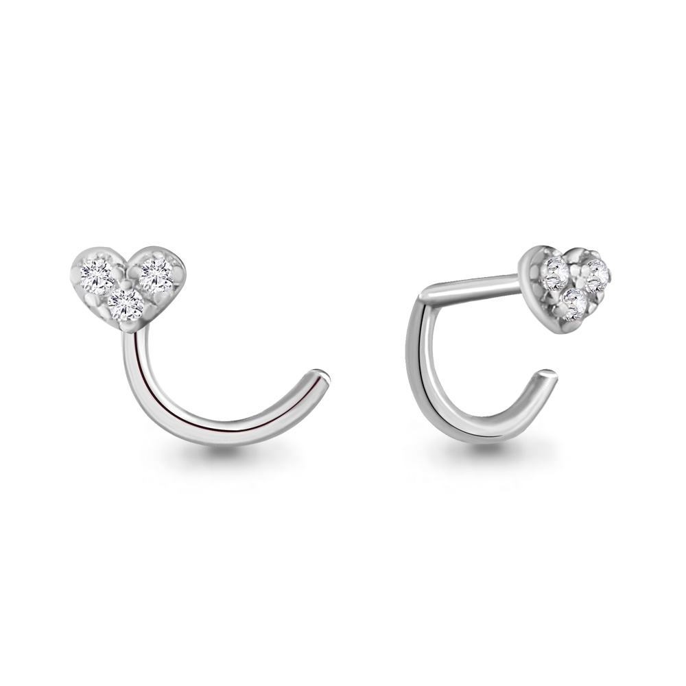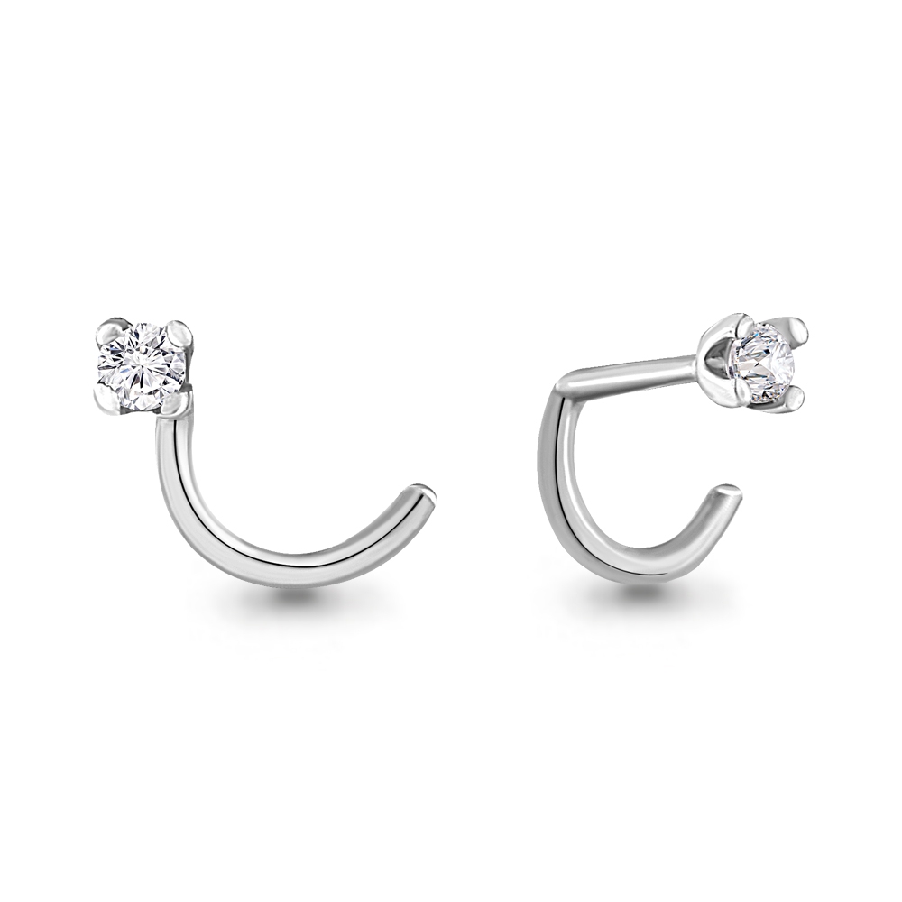 Пирсинг в нос из белого золота с фиан...