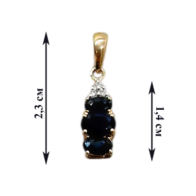 Подвес из золота с бриллиантом и с сапфиром Клондайк 555010кс удачно дополнит личную коллекцию и хорошо подойдет в качестве подарка. У украшения весом 1,46 оригинальный дизайн, уместный в разных образах. Подвески такого плана сейчас в тренде — достаточно только взглянуть на линейки мировых модных домов. Их можно носить как на длинной, так и на короткой цепочке в зависимости от эффекта, который хотите создать (подчеркнуть тонкую изящную шею или перенести акцент на декольте). Золото 585 пробы со временем не тускнеет и при минимальном уходе сохраняет роскошный блеск, а вставка (сапфир: 3 шт. овал 3/3, вес 1,23, бриллиант: 3 шт. 57 круглая 3/3, вес 0,03) — чистоту и прозрачность. На ее гранях красиво играет любой свет.