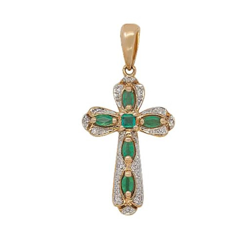 Подвес крест из золота с бриллиантом и с изумрудом Клондайк 810041ки