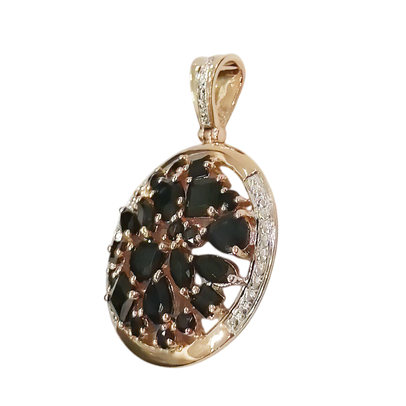 Подвес удачно дополнит личную коллекцию и хорошо подойдет в качестве подарка. У украшения весом 4,47 оригинальный дизайн, уместный в разных образах. Подвески такого плана сейчас в тренде — достаточно только взглянуть на линейки мировых модных домов. Их можно носить как на длинной, так и на короткой цепочке в зависимости от эффекта, который хотите создать (подчеркнуть тонкую изящную шею или перенести акцент на декольте). Золото 585 пробы со временем не тускнеет и при минимальном уходе сохраняет роскошный блеск, а вставка (сапфир: 10 шт. круглая 3/3, вес 0,4, сапфир: 3 шт. груша 3/3, вес 1,2, сапфир: 5 шт. квадрат 3/3, вес 1,1, сапфир: 4 шт. маркиз 3/3, вес 0,8, сапфир: 1 шт. овал 3/3, вес 0,45) — чистоту и прозрачность. На ее гранях красиво играет любой свет.