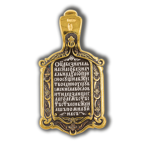 На обороте образка написана молитва:"Отца безначальна, Сына собезначальна, Духа соприсносущна, Божество едино, херувимски славословити дерзающе глаголем: свят, свят, свят еси Боже наш, помилуй нас».