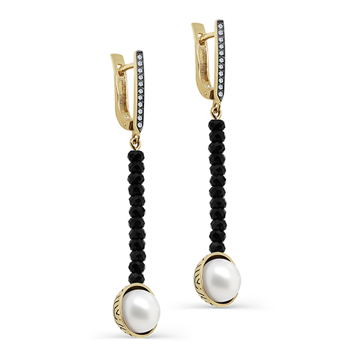 Серьги из лимонного золота с ониксом ...
