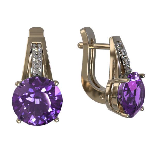 Серьги из золота с фианитом и с амети...