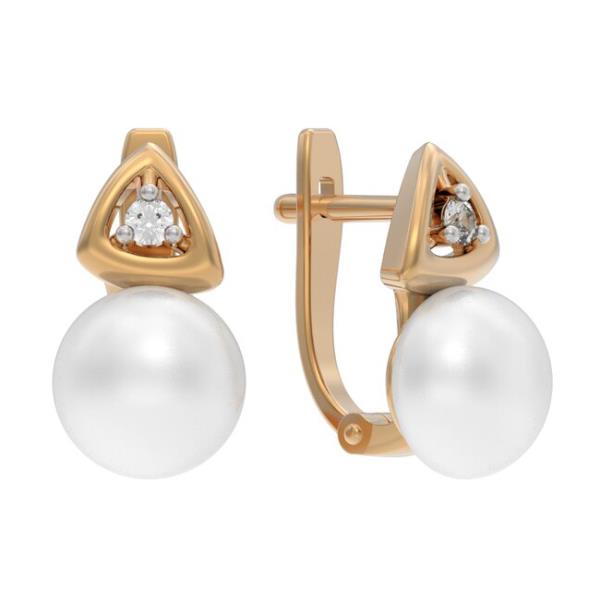 Серьги из золота с фианитом и с жемчу...