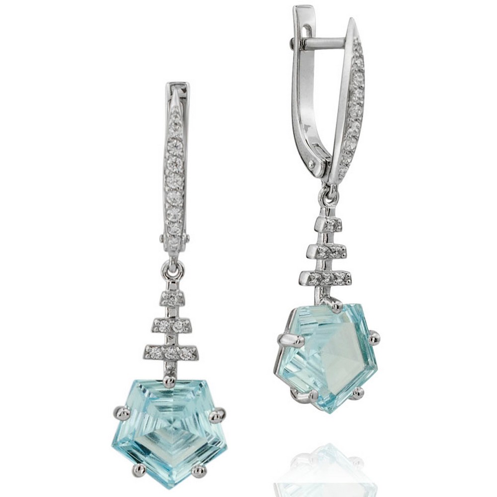 Серьги из белого золота с топазом и с фианитом Магия Золота сл-467б-т