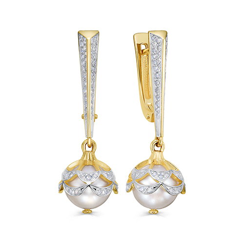 Серьги из лимонного золота с бриллиантом, с жемчугом, с турмалином и с эмалью Коюз 18510126-20