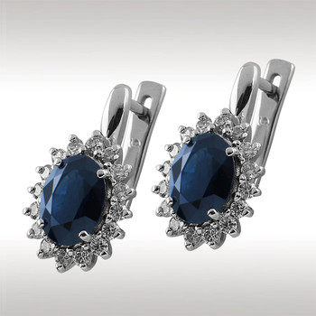 Серьги из белого золота с бриллиантом и с сапфиром Каст ювелирный завод 90042
