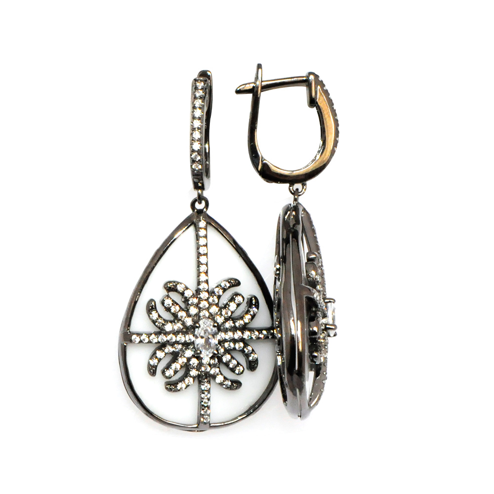 Серьги из серебра с фианитом и с агатом Style-Avenue EKE050-2