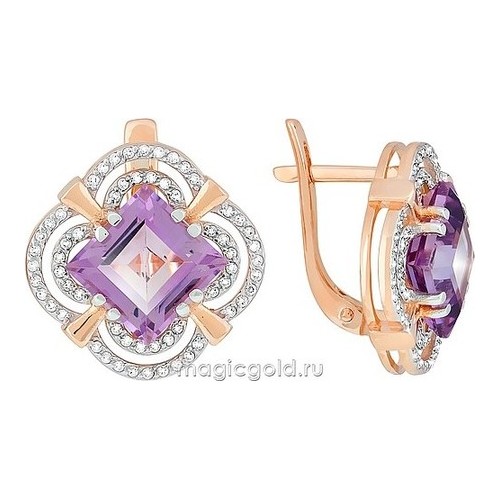 Серьги из золота с фианитом и с аметистом Магия Золота сл-495к-а